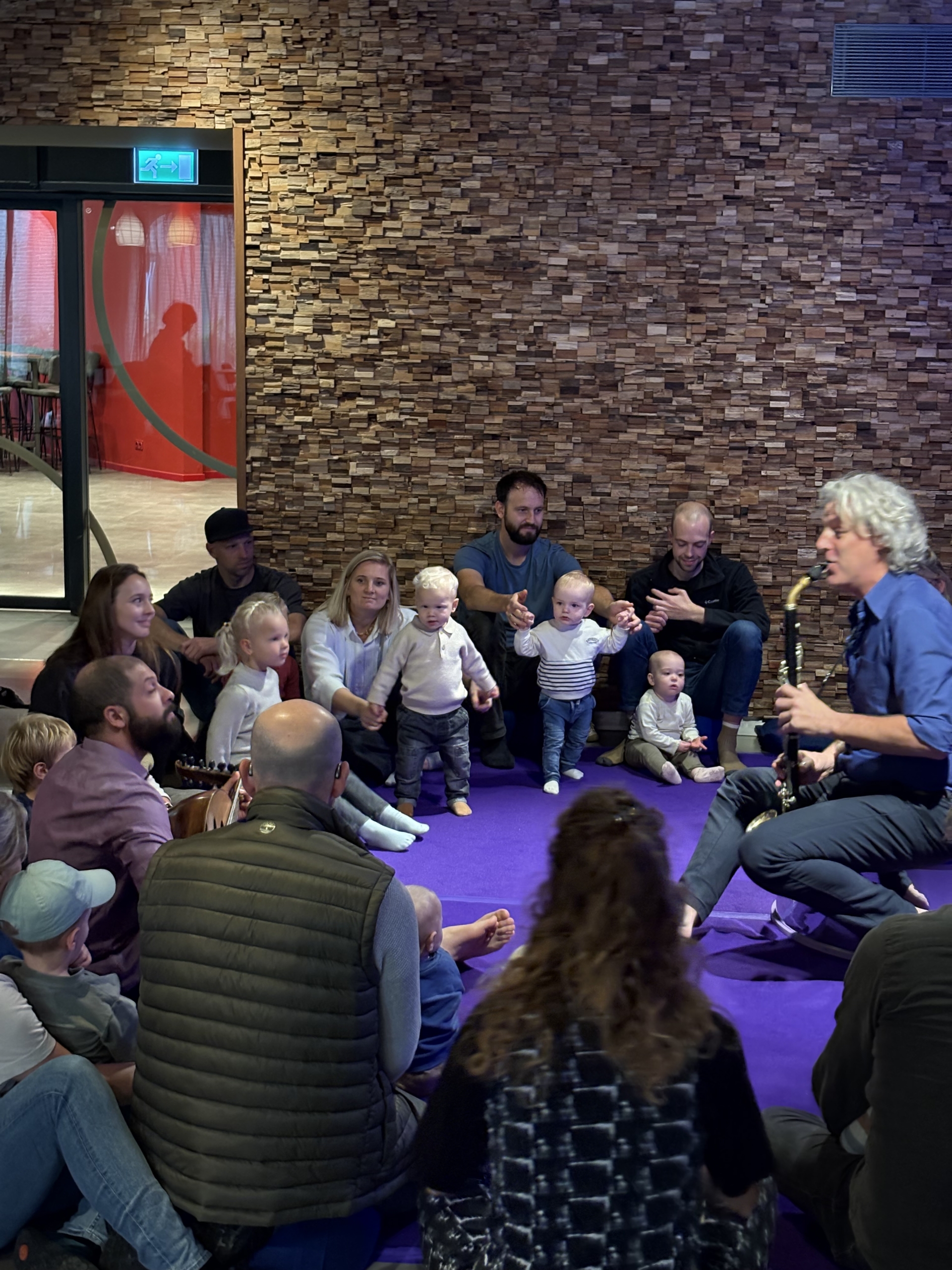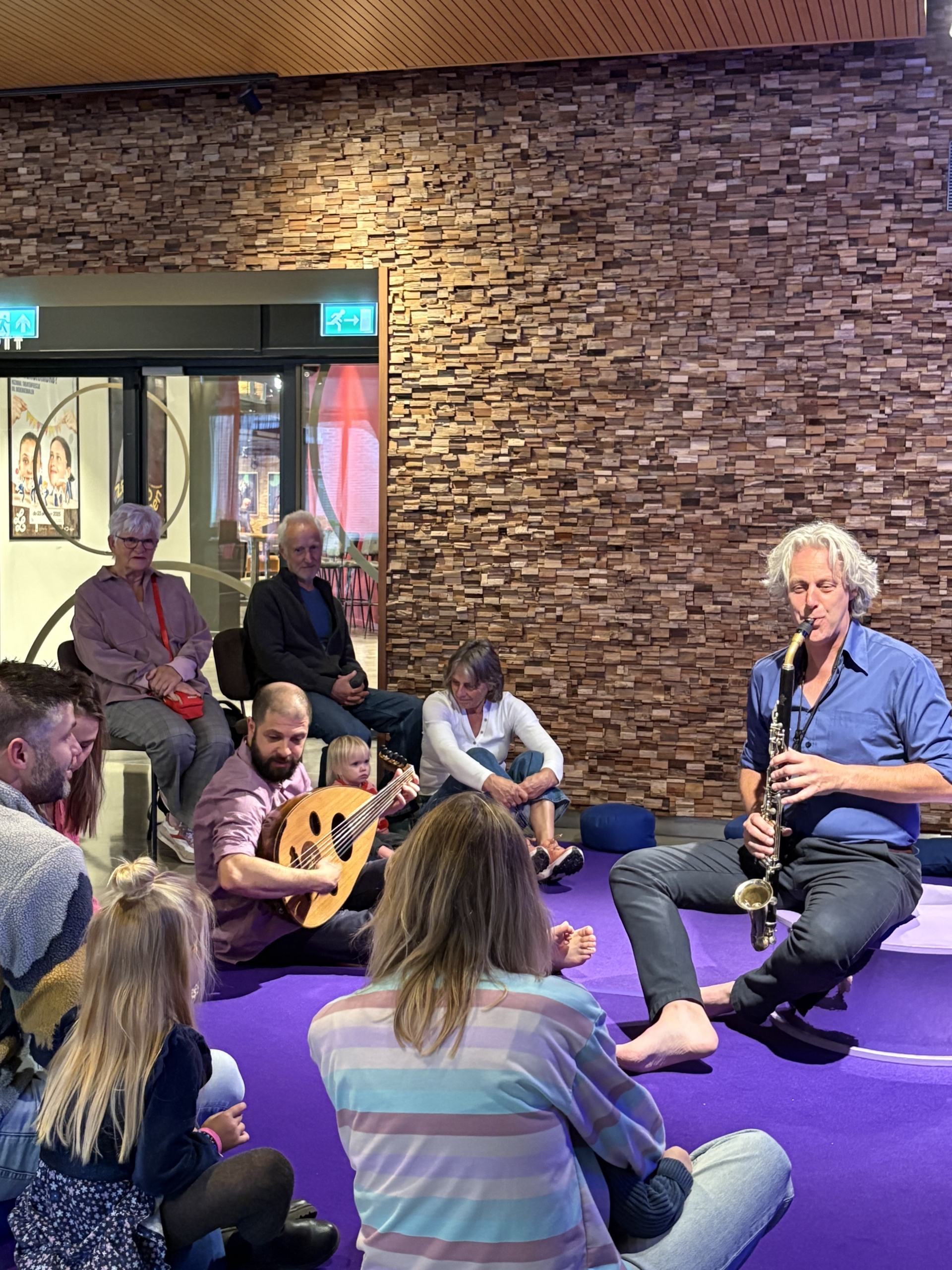 Afgelopen zondag 10 oktober vonden de eerste Kruipsessies plaats tijdens de opening van het nieuwe seizoen van Taqa Theater de Vest in Alkmaar. In hun gloednieuwe foyer konden de allerkleinste oortjes van heel dichtbij kennismaken met de musici van Frisse Oren.